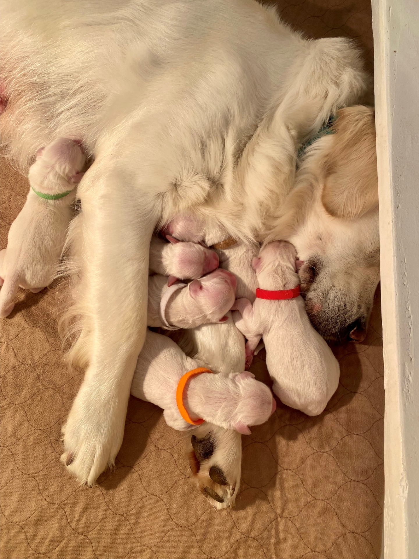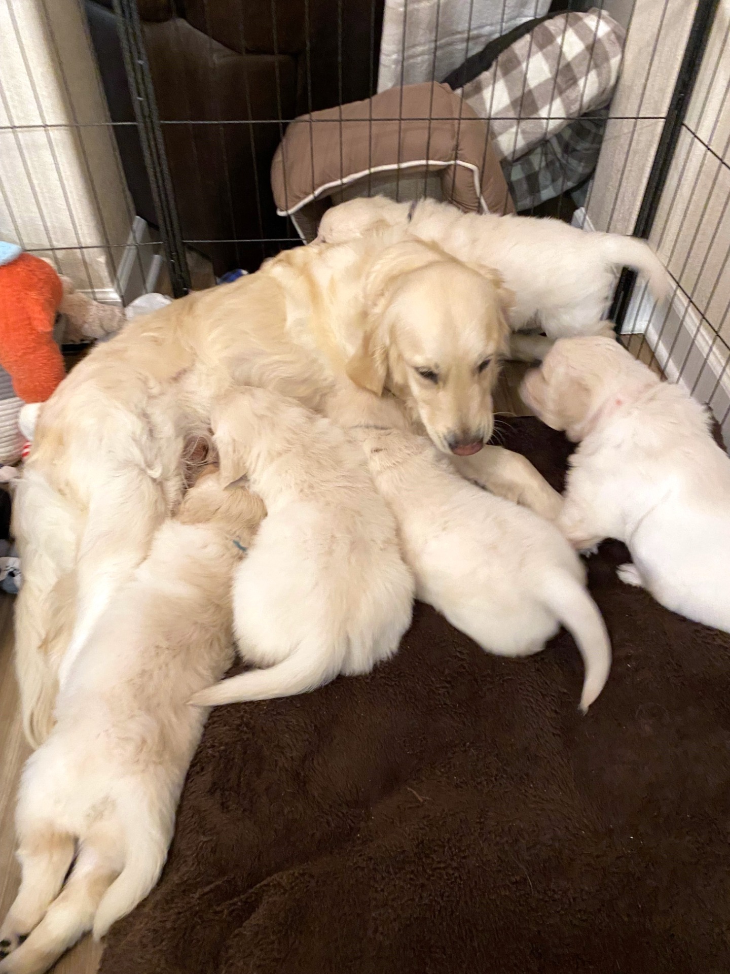 This was Winnie's first litter. She did an amazing job taking care of her pups and being attentive to their needs and not wanting to leave their side. We called her pups our ERA's litter (We have a "Swifty" in the house). Winnie had 5 boys and 4 girls. These beautiful pups went to their forever homes at the end of October 2023.